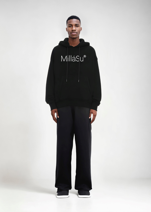 OVERSIZED PRINTED MILLÁSU® BLACK COTTON HOODIE
