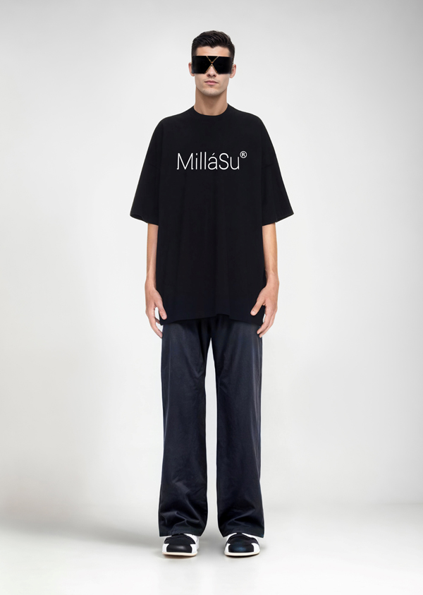 OVERSIZED PRINTED MILLÁSU® BLACK COTTON T-SHIRT