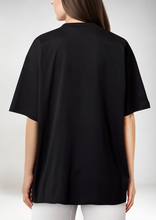 OVERSIZED LOGO-PRINT BLACK COTTON T-SHIRT