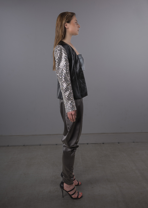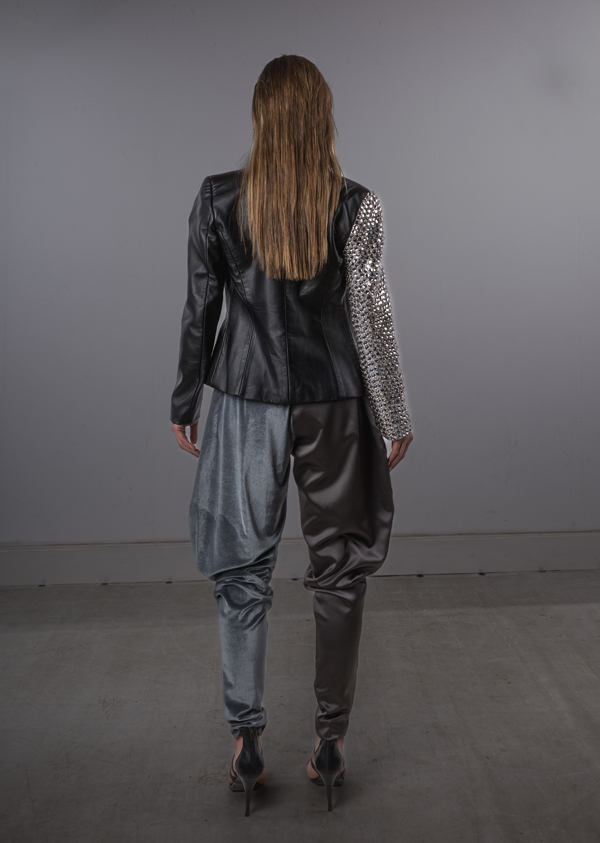 BLACK JACKET WITH ONE SLEEVE SWAROVSKI CRYSTALS
